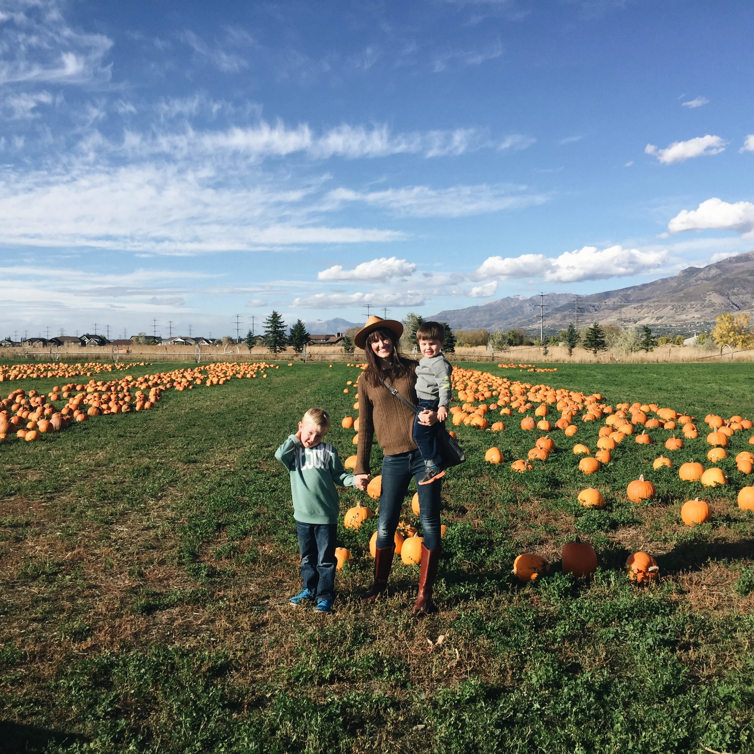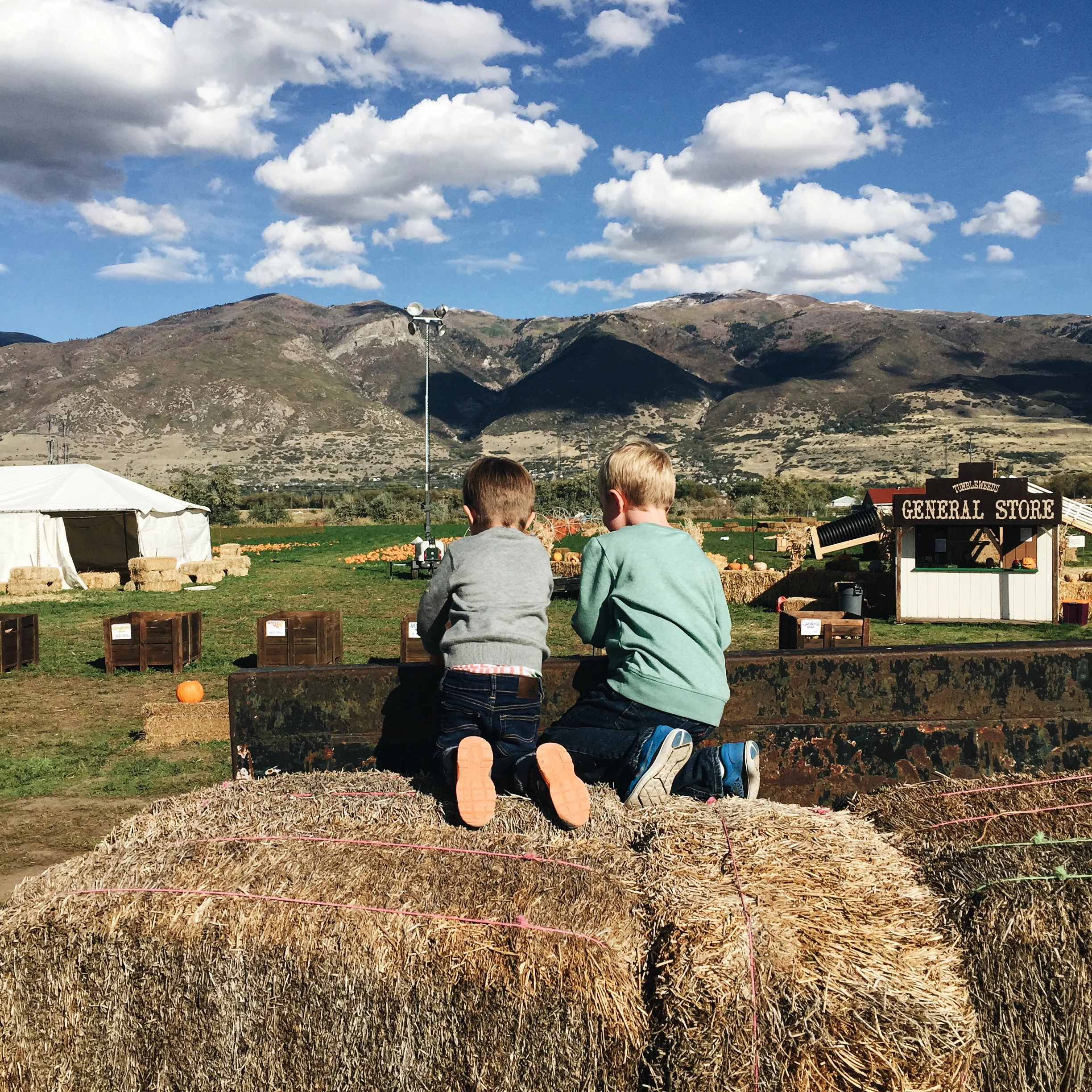 Yesterday we made it out to the local pumpkin patch! It was so fun. Last week we felt quite couped up because everybody except me was sick, and we even had to miss a fun outing with friends (no fun). It sure felt great to get out in the gorgeous October sunshine and run around! The boys were so excited to see a lego haunted house along with a hay maze and pull the wheel barrows around. Later I described the boys at the pumpkin patch to Jeremiah as two little bees buzzing around as quickly as they could and loading waaaaay too many pumpkins into their wheel barrows. They were having so much fun running around! I love being their mom.