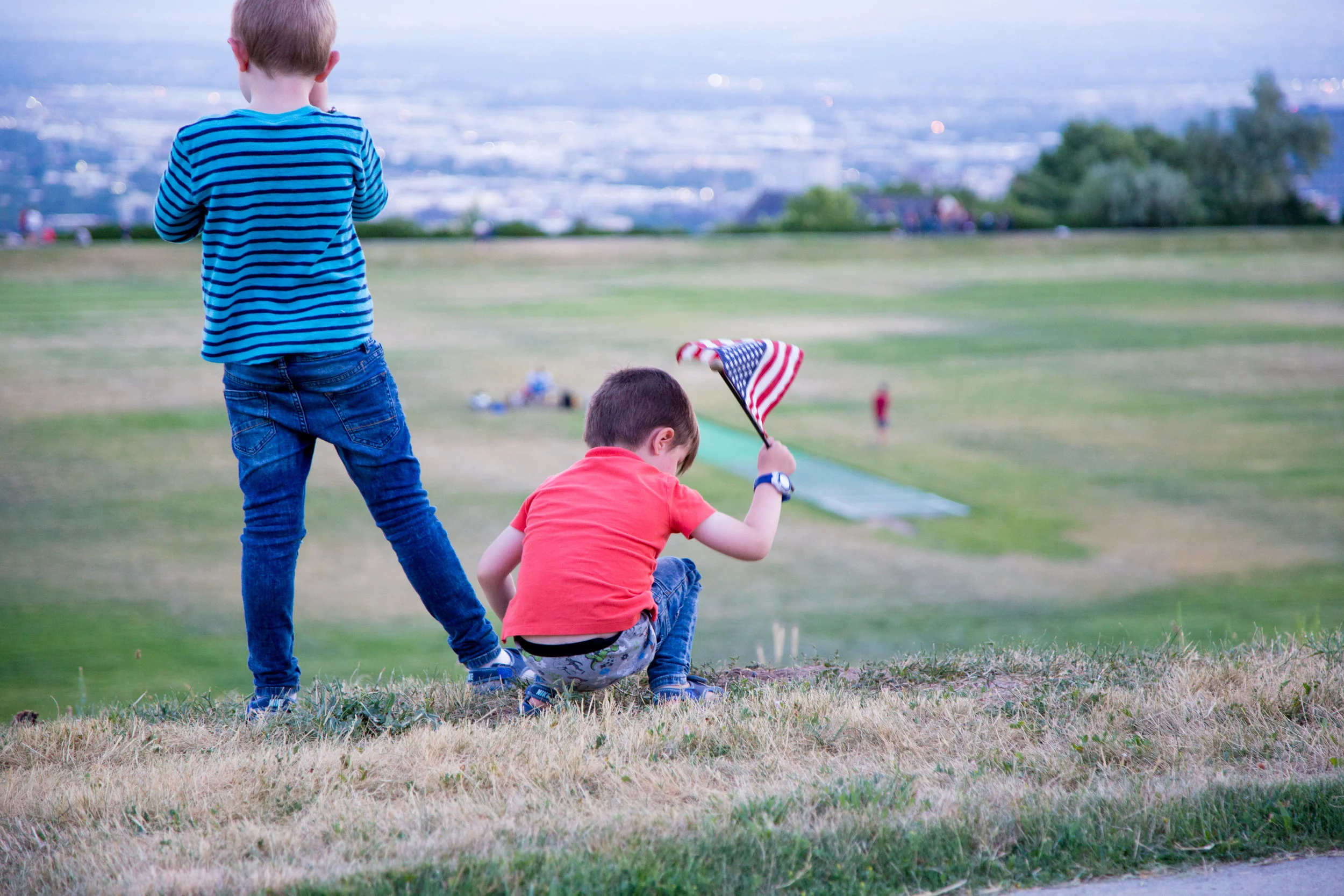 In the morning we went to a neighborhood breakfast at our church and spent a couple of hours unpacking then took the crew out for some fun! I wanted to make something special for dinner and dessert, but we ended up getting pizza and bringing a few store-bought treats to watch fireworks throughout the valley. We told the boys they could stay up past their bedtime (which is actually quite early). They were super excited, but after flying all day the day before and running around playing and chasing one another, Abe told us at 9:00 that he wanted to go home! I think he wasn't used to seeing nightime--especially after almost 24 hour daylight in Alaska! He kept wanting to turn on the flashlight on my phone. So we went home (a very short drive) and had the boys change into their jammies and watch some fireworks. They felt totally fulfilled with a day of celebration!